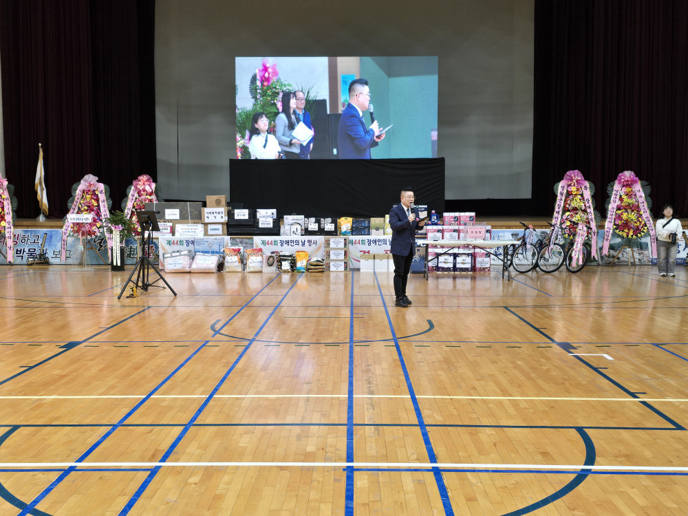 제44회 장애인의 날 기념행사 최고관리자 0 4월 19일 영월군 관내 장애인과 비장애인, 시설종사자, 자원봉사자 포함한 700여명 참여하면서 제44회 장애인의 날 기념행사가 열렸다.1부 행사는 식전 축하공연, 장애인 복지증진 유공자 포상, 장학금 전달 진행 끝난 후 중식제공하였으며, 2부 행사는 노래자랑 및 장기자랑, 행운권 추첨을 진행하였다.이번 행사는 장애인 인식개선 및 장애인 서로간의 친목을 도모하기 위해 화합의 장으로 마련하였다.